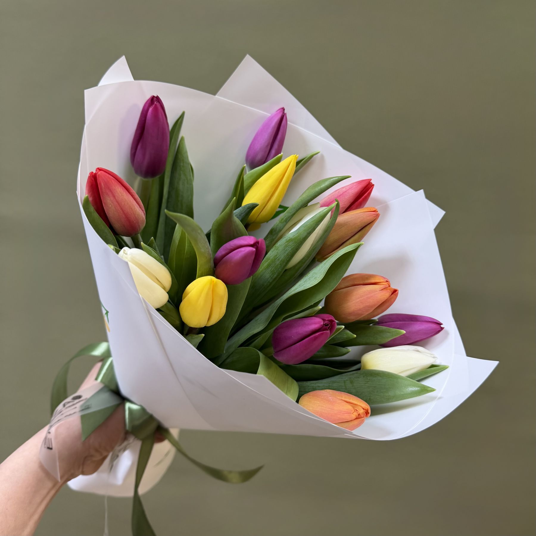 Оттенок тюльпанов (сорт) и оформление букета может отличаться от заявленного на фотографии.